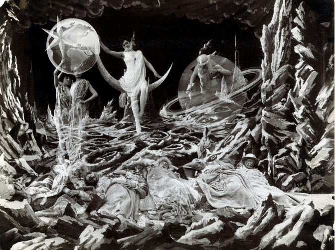 Один из ранних кинематографистов Жорж Мельес, будучи хорошим художником, практиковал в своих произведениях создание фантастической реальности. В ходе съемочных опытов автор применял множество новых технологий совмещения в кадре, которые были названы «методом комбинированных кадров». При подготовке специальных макетов декораций использовался прием общей стилизации, так, чтобы все совмещенные в одном кадре объекты были в одном стиле, в одной степени стилизованности. Так, при съемках фильма «Путешествие на Луну» режиссера Ж. Мельеса, для совмещения декораций с актерами, был прорисован яркий грим и даже складки на одежде актеров, чтобы обобщить весь кадр в одну степень стилизованности и, как следствие, достичь убедительности и реалистичности изображения.