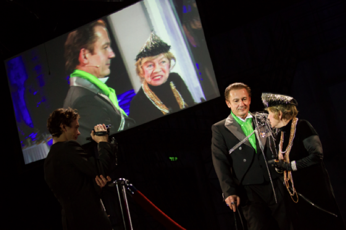В сегодняшней театральной практике, активно осваивающей цифровые инструменты, видеопроекции заняли весьма заметное место в арсенале сценографов. Они стали почти привычным элементом оформления, давая возможность создавать многослойные, динамичные визуальные среды и обогащать привычный декорационный ряд. Видеоэкраны, которые нередко приходят на смену традиционным живописным задникам, не просто имитируют их, но и открывают качественно новые горизонты для визуального решения спектакля. Л. Манович писал о том, что картина со времен Ренессанса стала прообразом экрана, так как она служила «окном в виртуальный мир», и ее можно назвать «классической симуляцией» [6, с. 75]. Когда появился экран, восприятие зрителя было уже подготовлено многовековой историей живописи, особенно по форме – телевизор напоминает раму картины. Парадокс восприятия виртуальной реальности состоит в одновременности движения и неподвижности тела, что в театральном варианте усиливается необходимостью следить за действием актеров (рамой или окном служит сама сцена) и соединять его в воображении с различными элементами видеографии, то есть с другими окнами. Таким образом, восприятие театрального зрителя меняется на монтажное, сближая его с кинематографическим, когда приходится соединять разные элементы воедино – видеоизображение, текст, живые действия, декорации и т. д. Но поскольку театр – это зрелищное искусство, карнавальное, то есть телесно-ориентированное, что требует непосредственного контакта, монтаж происходит и между различными планами реальности – виртуальной и действительной (экзистенциальной).